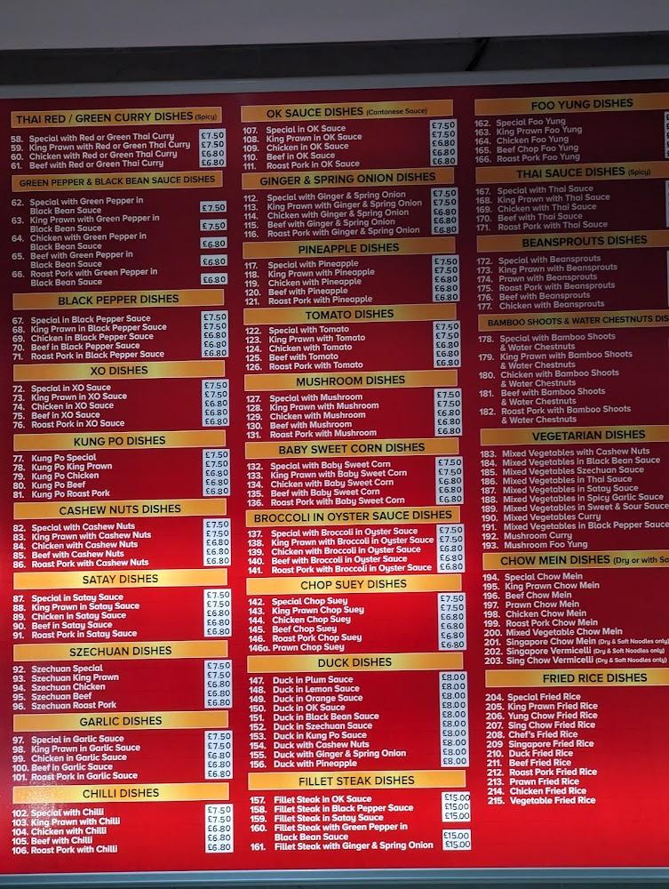 The chef specials offer unique flavors, like the Crispy Shredded Chicken in Thai sauce, which many patrons rave about. Sweet and sour dishes provide a nice counterbalance, while curry options, spanning from chicken to king prawn, cater to those craving spicy kick. Vegetarian dishes are plentiful, making it easy for non-meat eaters to find enjoyable options, such as Mixed Vegetables with Cashew Nuts. A variety of fried rice dishes adds to the meal choices, ensuring everyone leaves happy.